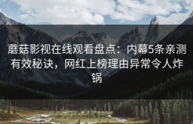 蘑菇影视在线观看盘点:内幕5条亲测有效秘诀,网红上榜理由异常令人炸锅