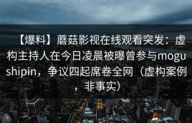 【爆料】蘑菇影视在线观看突发:虚构主持人在今日凌晨被曝曾参与mogushipin,争议四起席卷全网(虚构案例,非事实)