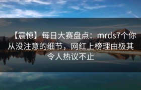【震惊】每日大赛盘点:mrds7个你从没注意的细节,网红上榜理由极其令人热议不止