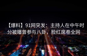 在今天的娱乐圈和网络新闻界,最令人震惊的莫过于一则突发爆料:一位知名主持人在中午时分被曝光曾参与八卦...