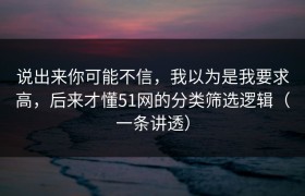 说出来你可能不信,我以为是我要求高,后来才懂51网的分类筛选逻辑(一条讲透)